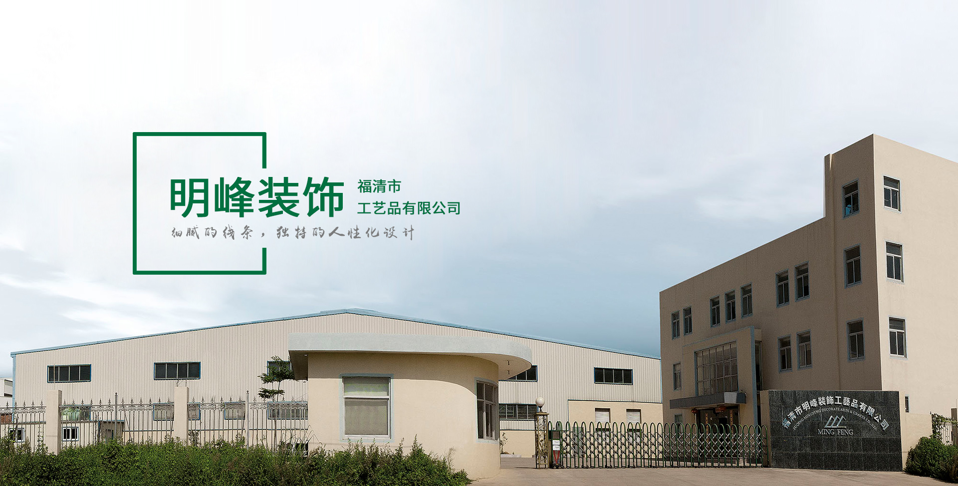 福清明峰装饰工艺品有限公司坐落于福建主要工业区--福清洪宽工业区。我司占地17000平方米。产房占地9000平方米。目前已有2条生产线。